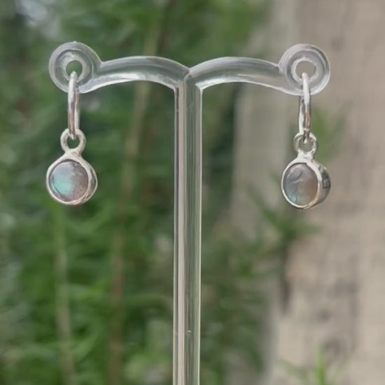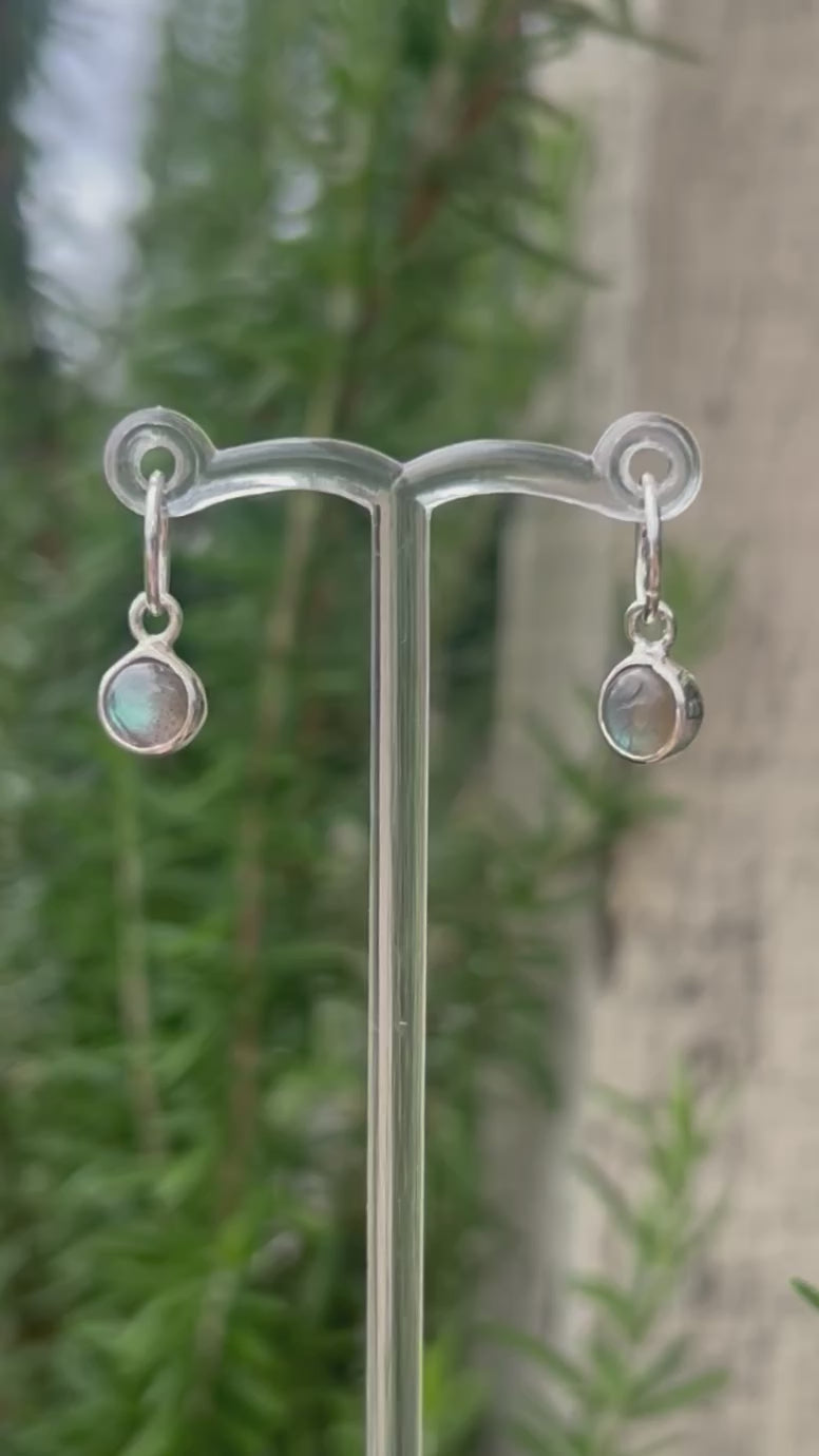 A simple yet timeless pair or little earring dangles. Perfect to pair with a dangly earring stack, or simply on their own. Crafted completely by hand, these dangles feature labradorite, wrapped in a sterling and fine silver home.