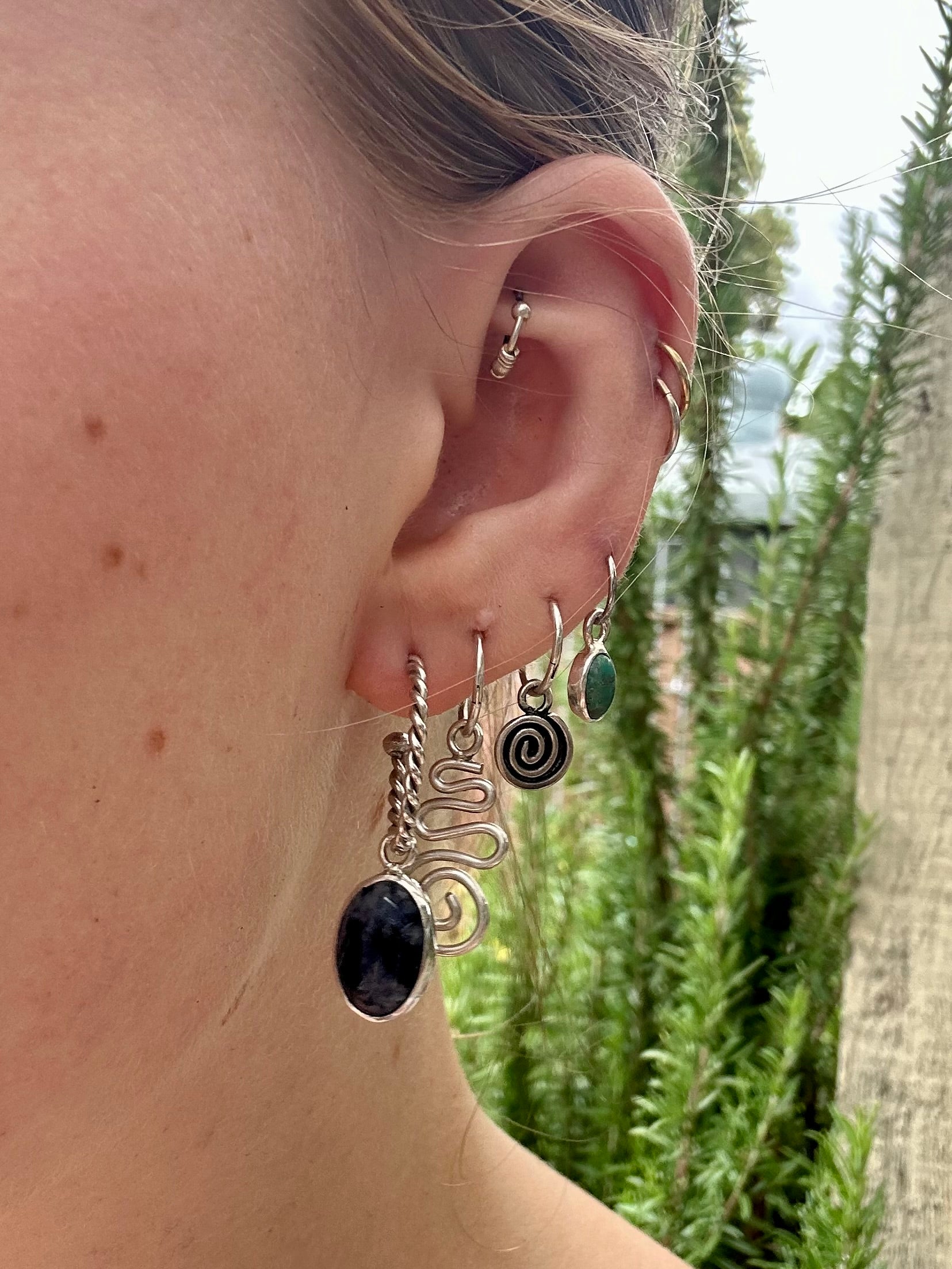 Pair your dangles with either 8mm sterling silver sleepers, sterling silver shepherd hooks, or handmade faux twisty hoops. PLEASE NOTE: these are not included in the price of the dangles, and must be purchased separately.