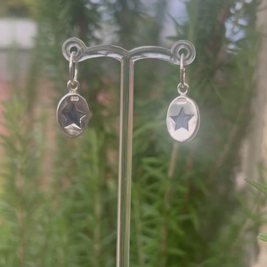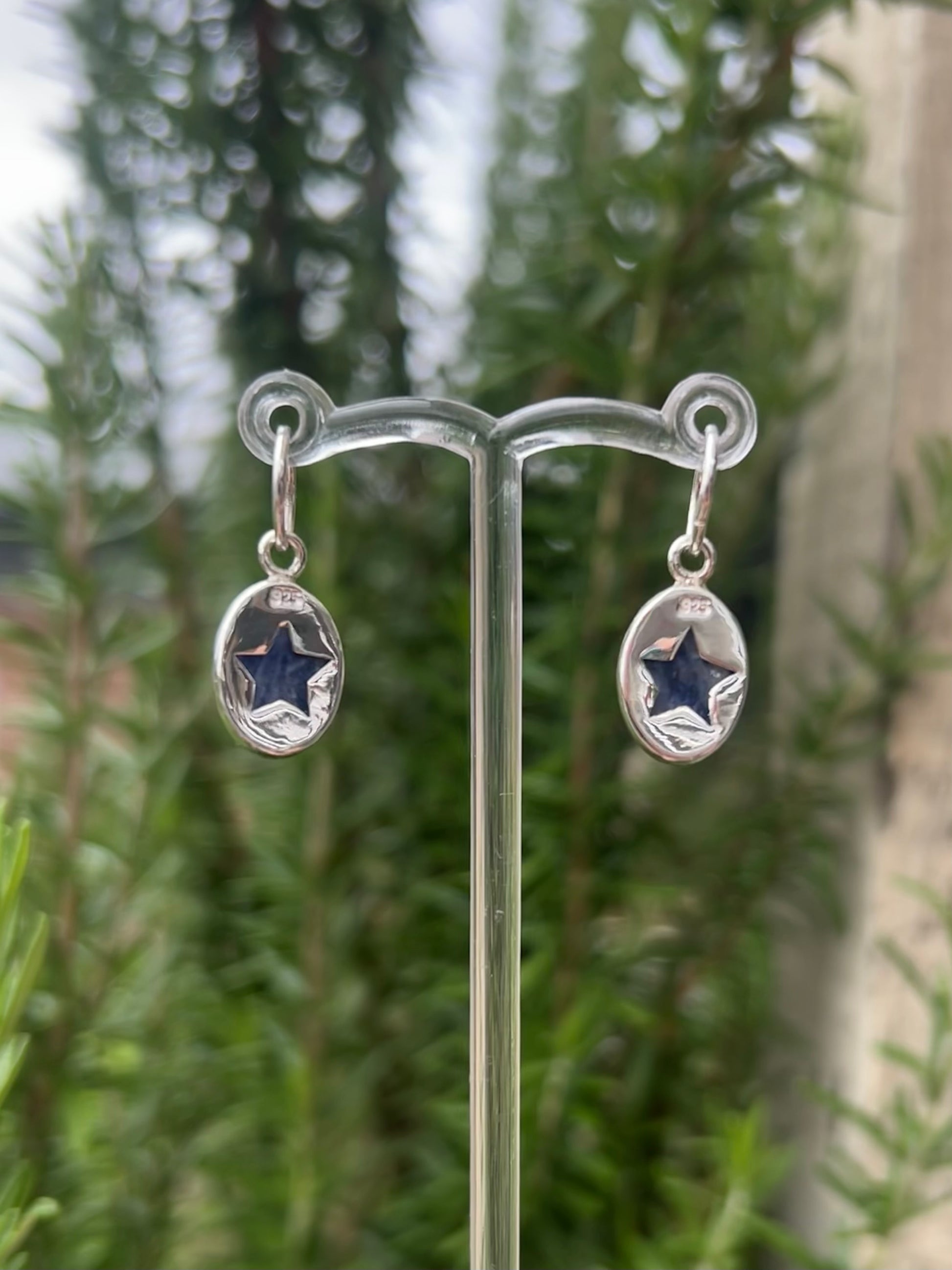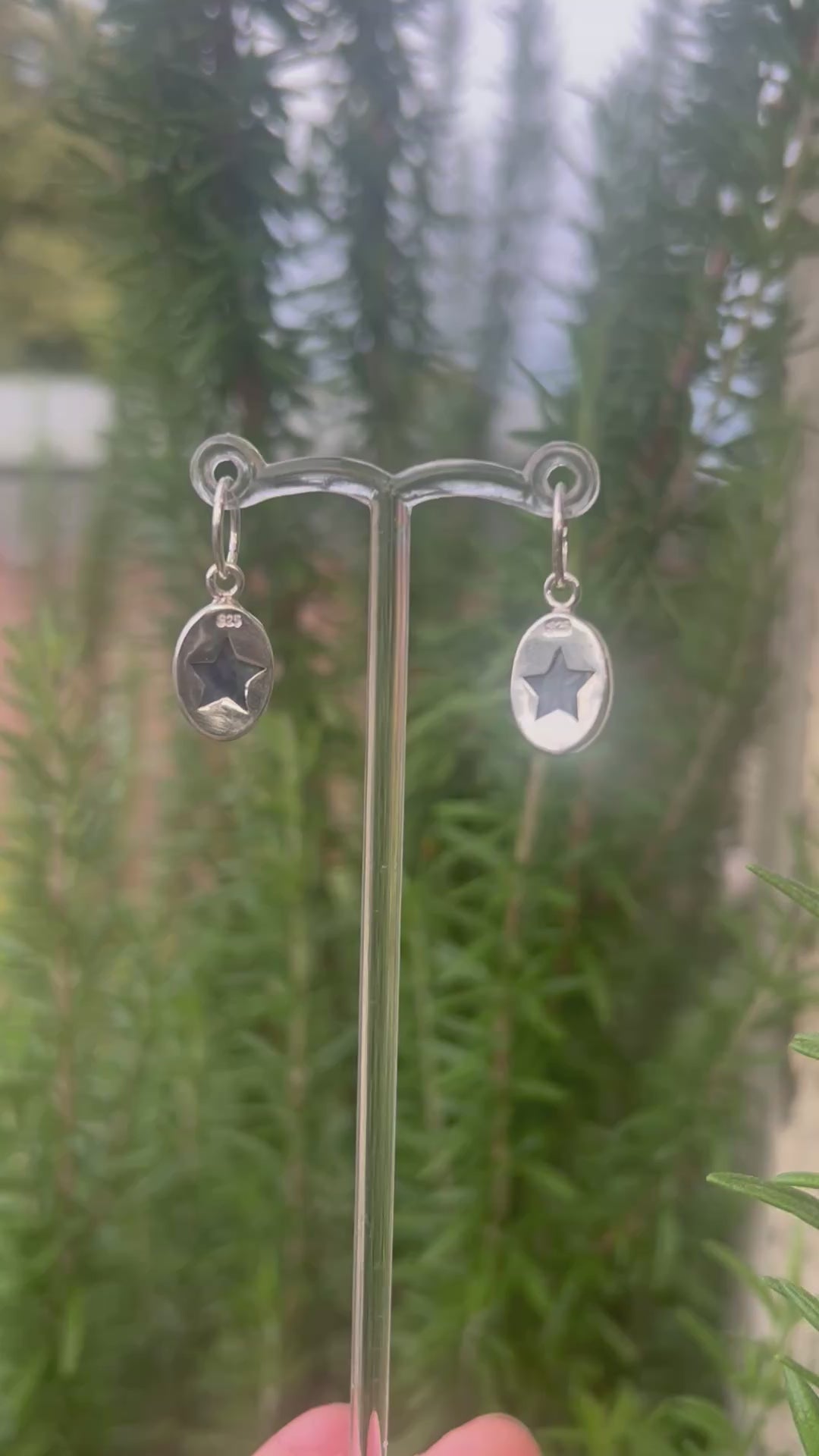 A simple yet timeless pair or little earring dangles. Perfect to pair with a dangly earring stack, or simply on their own. Crafted completely by hand, these dangles feature sodalite, and hidden star cutouts, wrapped in a sterling and fine silver home.