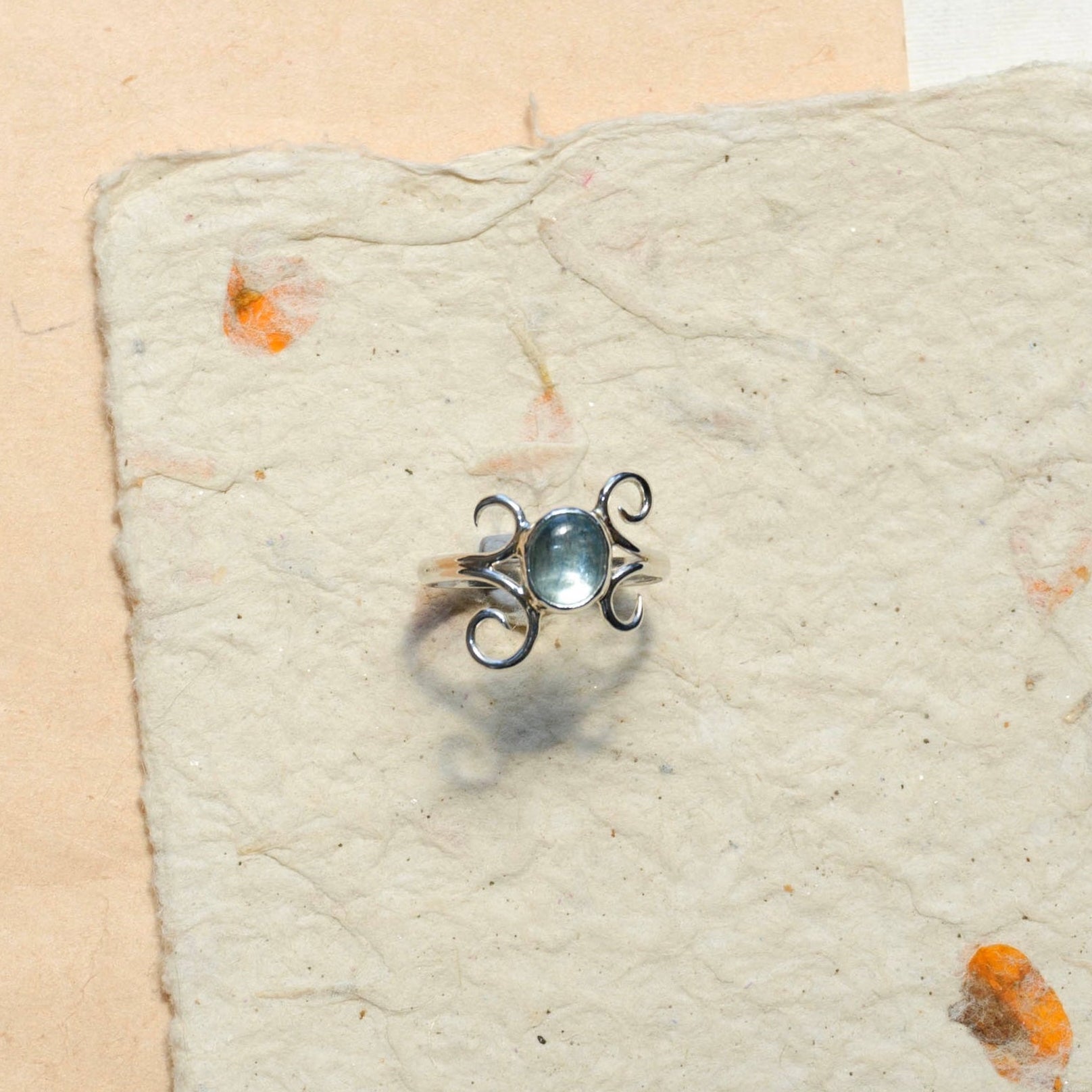 The perfect addition to your ring stack, sure to stand out and catch peoples eyes. This beautiful ring is very unique, featuring a dreamy kyanite. Completely handcrafted out of sustainably sources materials, crafted from 925 sterling silver and 999 fine silver.
