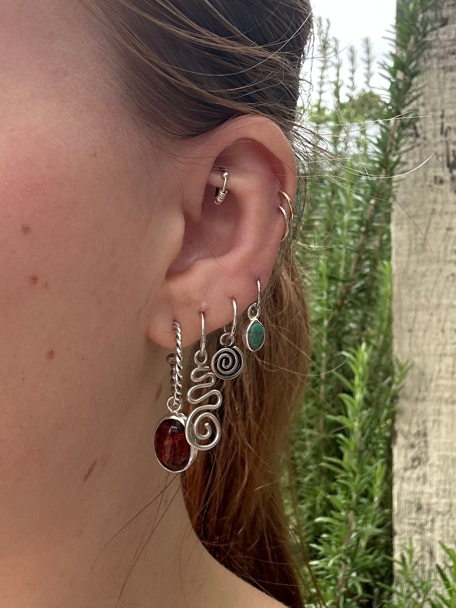 Pair your dangles with either 8mm sterling silver sleepers, sterling silver shepherd hooks, or handmade faux twisty hoops. PLEASE NOTE: these are not included in the price of the dangles, and must be purchased separately.